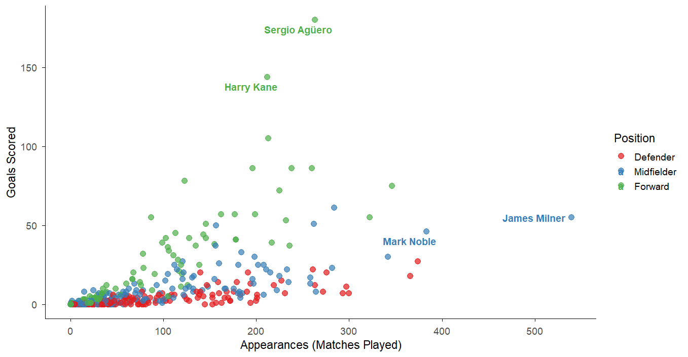 This project explores performance patterns among Premier League players using position-based segmentation and visual analytics. Using R and the Tidyverse, I analyzed historical player statistics to examine how appearances, goal output, and team goal distribution vary across defenders, midfielders, and forwards.